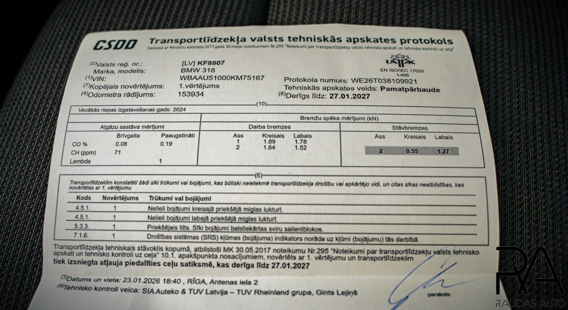 Servisa pārbaudē apstiprināts: apskate līdz 2027 gada janvārim.